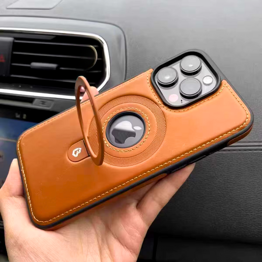 Carcasa Ecocuero Con Anillo De Soporte Magnético iPhone 16