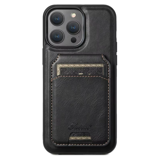 Carcasa cuero ecológico con tarjetero magnético para iPhone 16